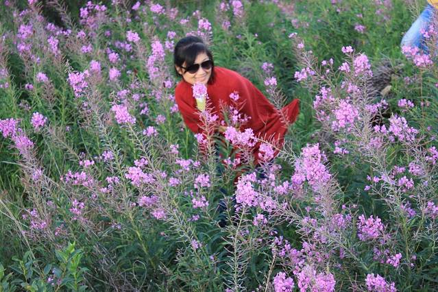 从白桦林回来的路上,看到一片花海,于是激动地让师傅停车,师傅很无奈,说这样的花路上到处都是,我们哪里肯听,于是停车,拍照⋯