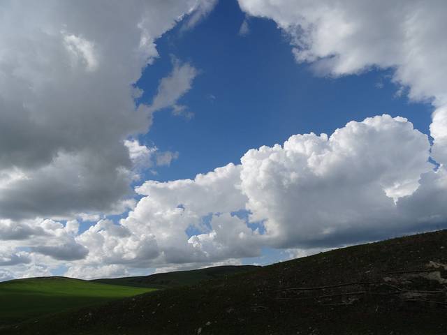 一下子晴空万里了,第一次看到草原的蓝天。
