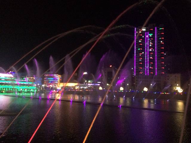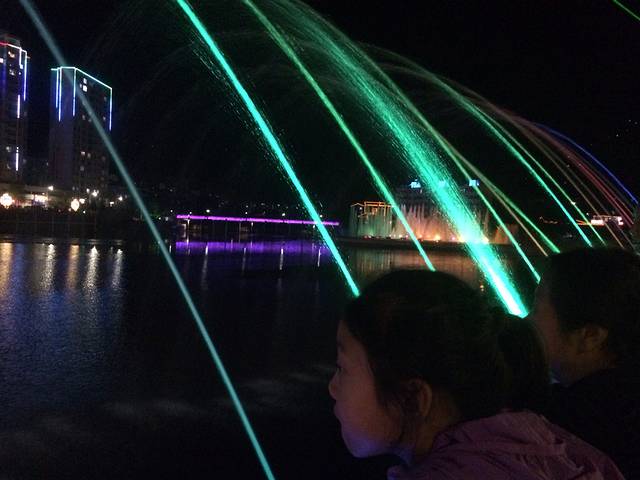晚饭后来到嘉陵江边,吹着清凉风,亲眼目睹了亚洲最高的音乐喷泉。在乐曲的伴奏中,灯光、水柱、繁星五彩缤纷,相互辉映,最后180米的擎天玉柱啊,引来大批游客驻目拍照。