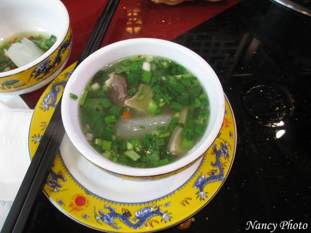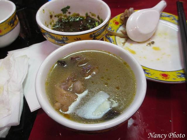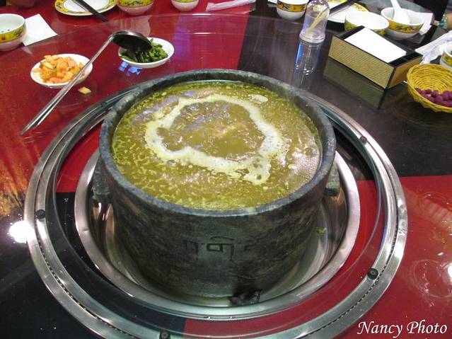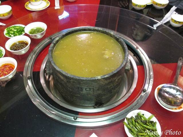 我们选择牦牛肉,几个不敢吃牛肉的团友照样吃鸡肉。牦牛肉的筋好吃,瘦肉较硬不好嚼烂。牦牛肉和我们平时吃的黄牛肉相比没有啥特别的。肉汤非常鲜美,老板还无限量提供白萝卜、淮山等。