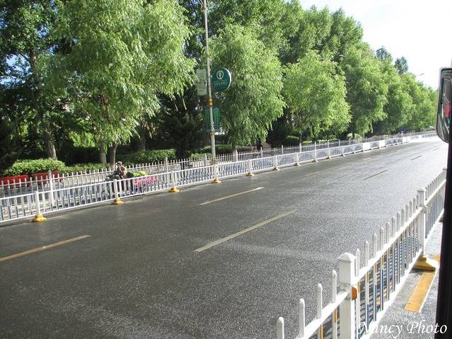 下雨天,气温下降,感觉很冷。还好乘坐这种封闭的观光车