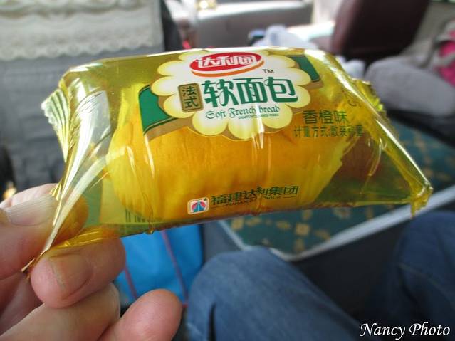 中午12:20才离开藏家。接下去还要很长时间才能吃上午餐,小赵怕大家肚子饿,早在车上备了饼干、小面包、巧克力威化饼等点心。拿出一个小面包,包装袋涨得鼓鼓的,可见这里高原气压有多高。我带了一个小面包回到厦门后包装袋完全瘪了。西藏气候干燥,饼干打开两天了都不会返潮,吃了还很脆。