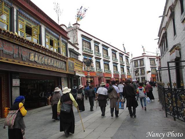 大昭寺外的八角街也叫(八廓街),已有藏民在转经