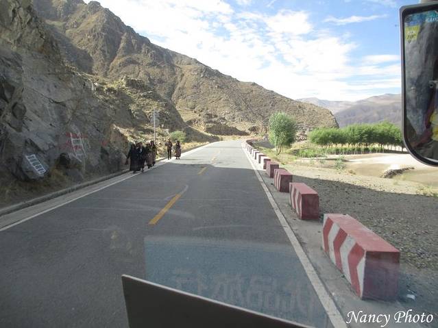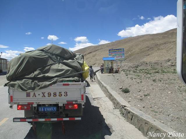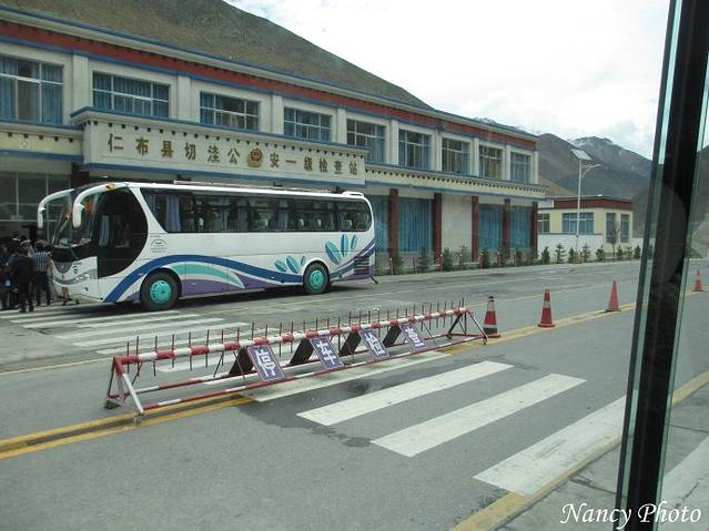 又到了一个公安检查站,过往的乘客都必须下车刷身份证。日喀则到拉萨全程280公里,因为限速、查身份证检查等,今天的车程需要5个多小时。