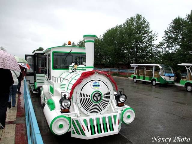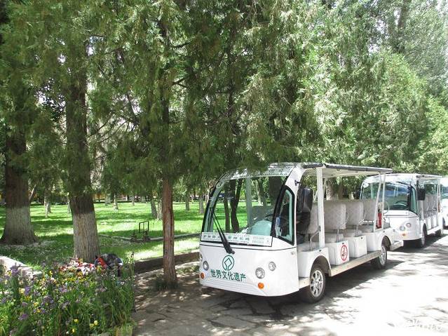 进入园区内可以乘坐电瓶车,每人20元。只有三个团友要乘车,其余人跟随导游边走边听介绍,感觉有树荫走走慢慢欣赏也不错。