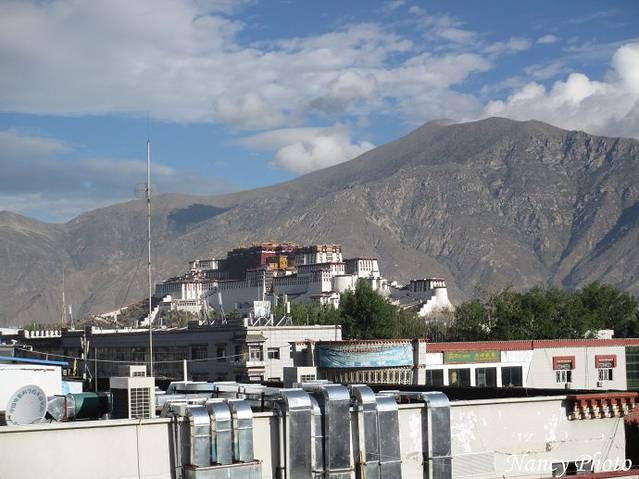 登山五楼天台,“ 哇”,布达拉宫就在眼前。据说拉萨的楼房不能建太高,以便在屋顶就能看到布达拉宫。