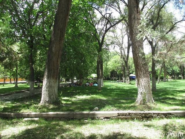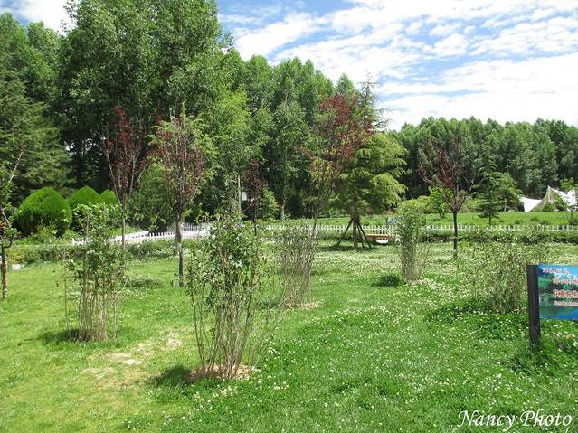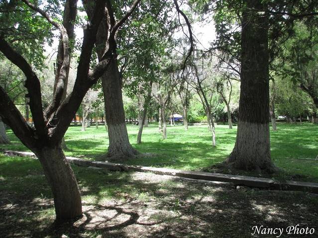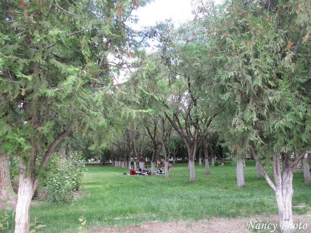 罗布林卡绿化很好,大树下有柔软的绿草地。