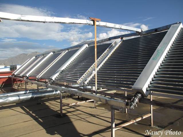 酒店楼顶上的太阳能热水器。充分利用日光之城得天独厚的阳光。