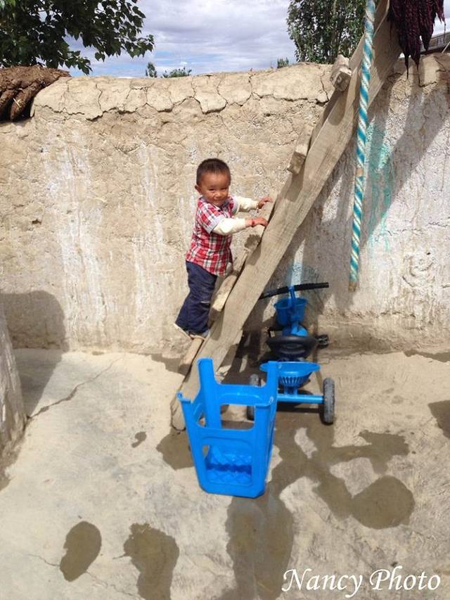 这是卓玛姐姐的孩子,两岁多,到处跑地上玩不怕摔,不用洗手拿着糌粑就吃。卓玛说这里的孩子是放养的。从院子上二楼是又窄又陡的梯子,还没有围栏,也不怕孩子摔下去,这在城市里绝对不可能。可爱的小朋友看到这么多客人来,乐坏了。