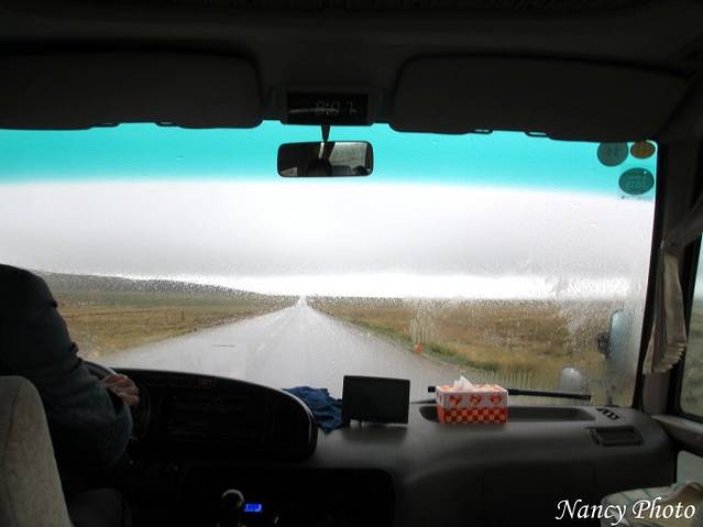 这是一条很美的公路,笔直向前远处好似连接着天,果然是“天路”,只可惜下雨破坏了美景。