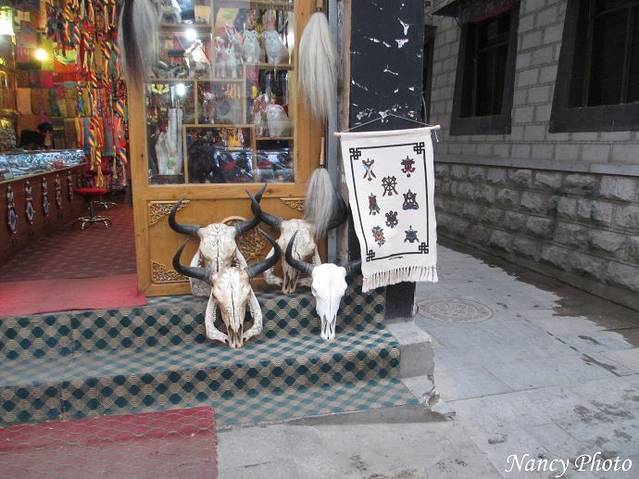 离开小昭寺,原路返回酒店,这是街边商店卖牛头挂件。