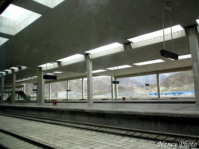 拉萨车站到了.歌曲《天路》里唱到“那是一条神奇的天路,把人间的温暖送到边疆,从此山不再高路不再漫长,各族儿女欢聚一堂 。”青藏铁路的确是条天路,乘坐列车才能感受到当年修建这条铁路的艰辛和困难。