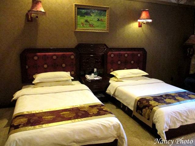 早晨起来,感觉头痛,枕头很高睡不好,但是导游交代要睡高枕。