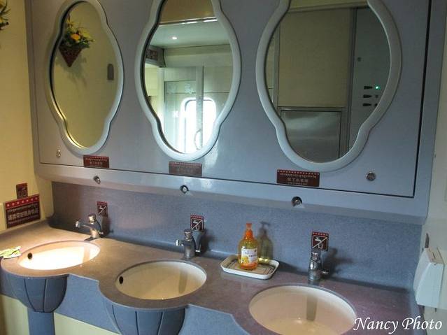 列车上的洗漱间,这是软卧车厢的。由于我们的车厢与软卧相连,我经常去使用这里的洗漱间和卫生间,感觉干净。