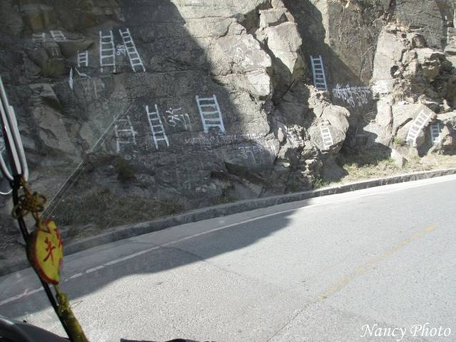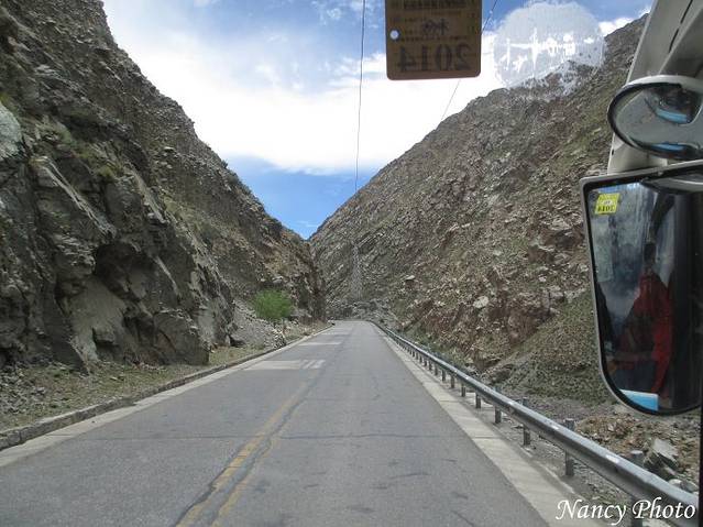 车子行驶在峡谷中,道路平坦,但感觉身边的岩石有可能落下