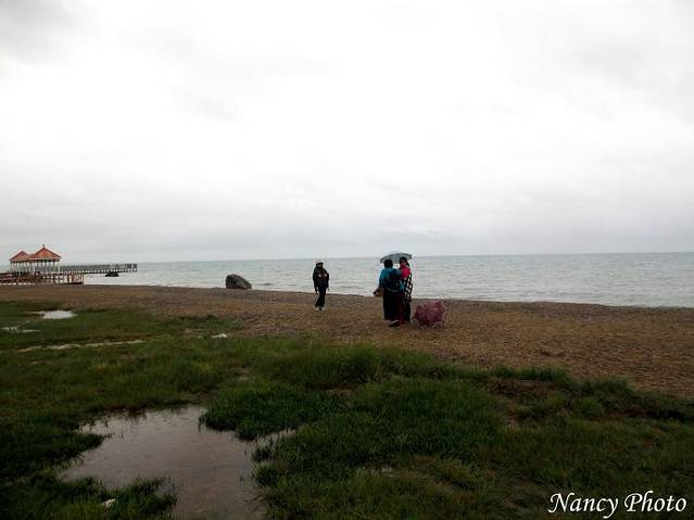 观光车把我们送到湖边,雨天,游客非常少
