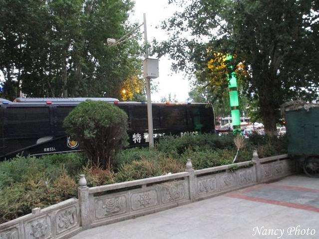 火车站随处可见持枪的特警,偷拍一张背面。我们的导游都不能进入车站接团,只能在广场外等候。