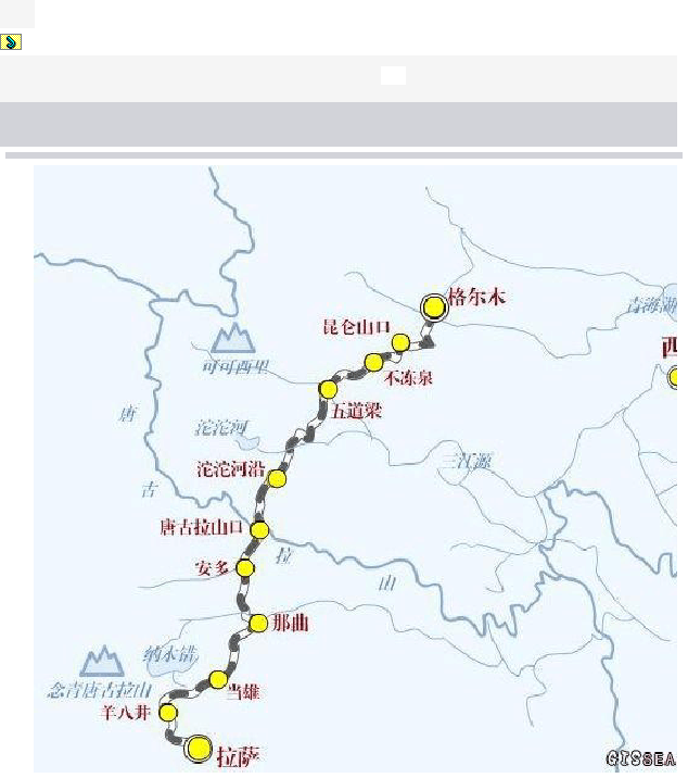 这是青藏铁路线路图,出发前我打印了一张,还标上到站的时间及海拔,以便了解。