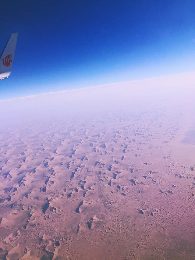 早上6点半从首都直飞敦煌,这个季节的游客真是多啊,安检人超级多搞得差点赶不上飞机。从北京往西飞不出50公里,就能体会到沙漠化问题的严重性,大片大片的沙丘,如同另一个世界,与喧闹的北京城格格不入。阳光非常好,忍不住拍几张照片。