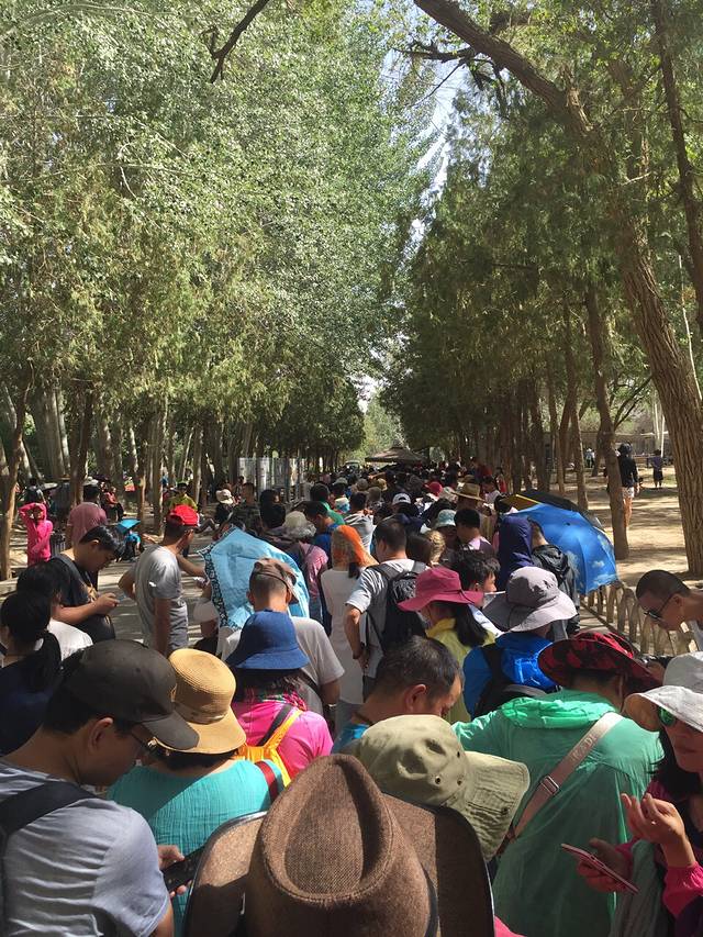 从莫高窟出来之后已经是下午五点,这时晴朗的天空竟然起了微风,去鸣沙山不知道是不是个好的选择,后来事实证明,在变天的时候去沙漠,异样的惊心动魄,不一样的风景,下面会给上照片。