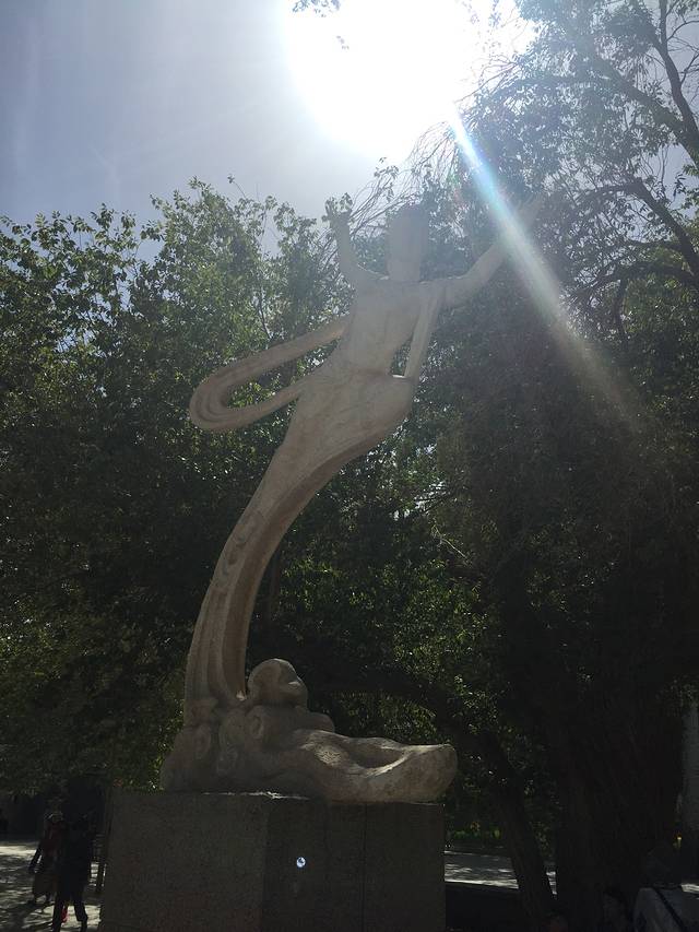飞天雕像,阳光恰好,像仙女手持仙杖