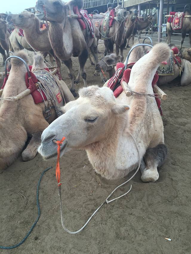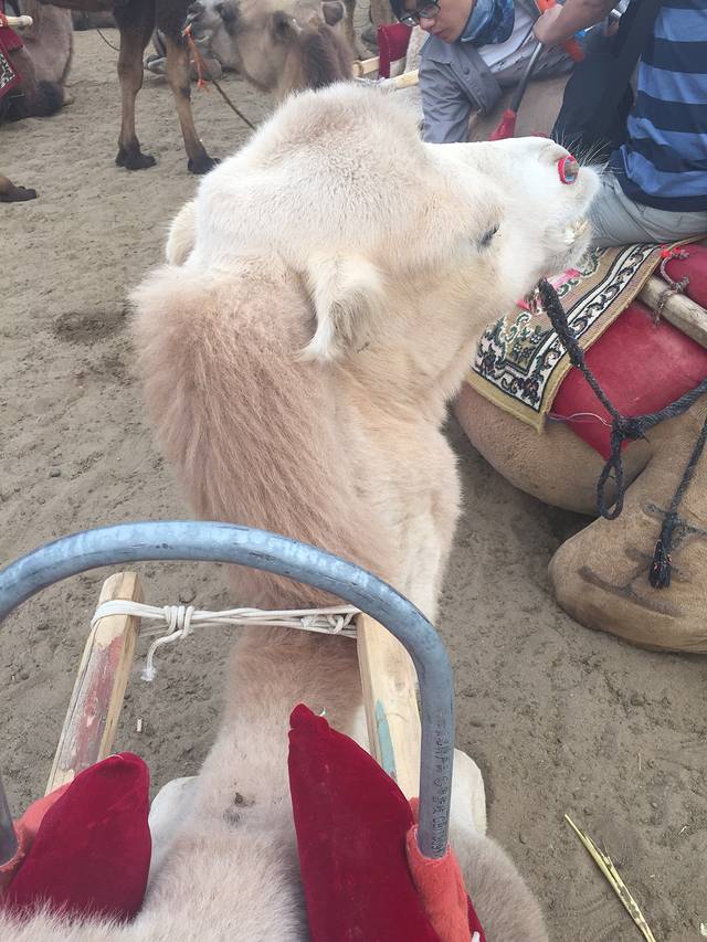 骆驼队,一眼就发现了这只白色的骆驼,很呆萌,那么就选择它好了!(^O^) 价格是100元一人