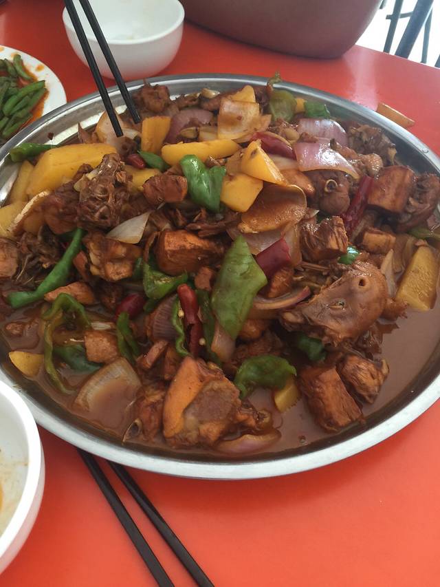 从机场坐大巴到市区,好像是每人3块钱,到达沙洲市场,中午选择味道和菜量俱佳的大盘鸡,真是美味。