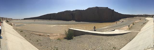 这边没什么特别的地方,跟莫高窟类似,但是没有莫高窟的壁画完整,数量也不多,我们就没去看,洞窟周围是土坡,生长树木就像沙中绿洲,非常凉快,不远处有条河,从远方的水库流下来