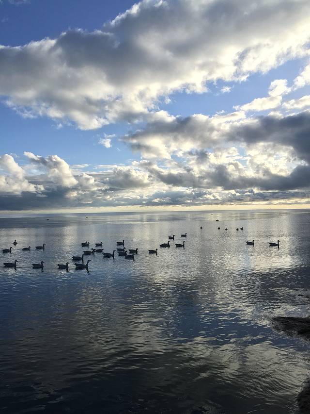 早上六点爬起来看日出,因为前一天的天气不好,本来也没抱多大希望,起床之后发现天晴了,但是远远的湖面上一大坨云挡住了初生的太阳,真是遗憾啊