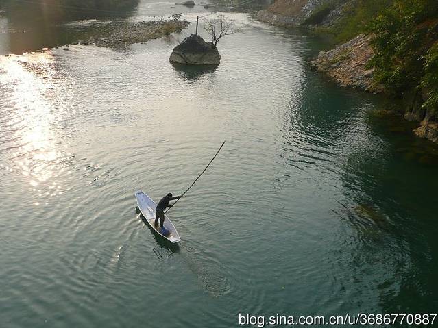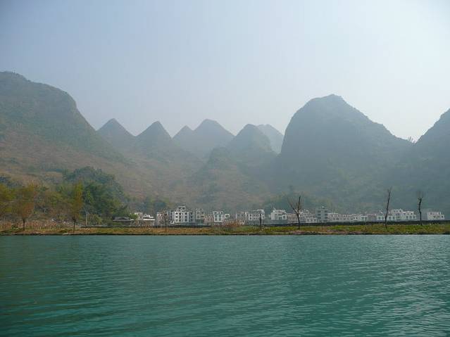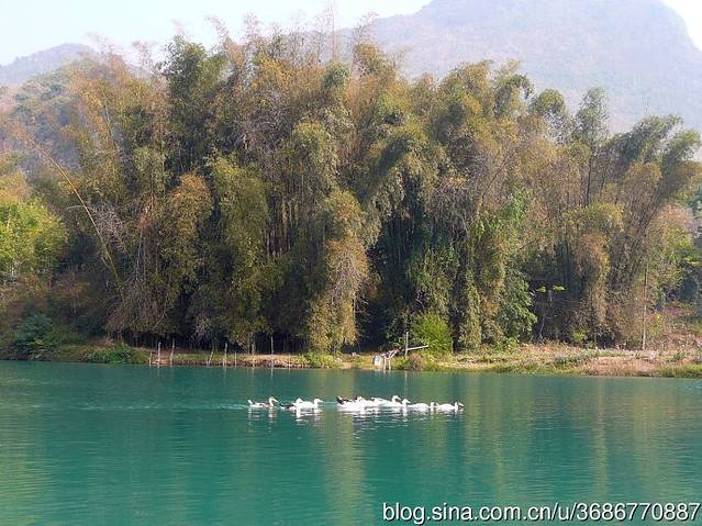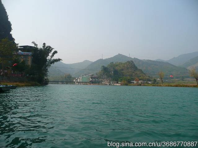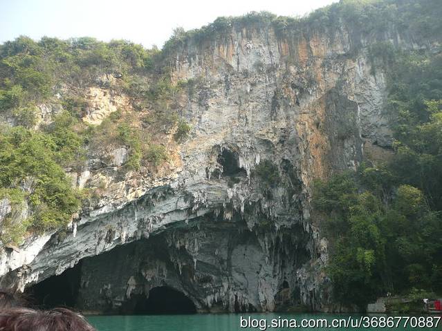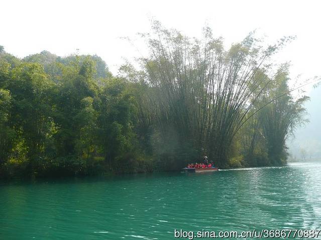 导游说,河水泛绿,是因为水里含锰多。广西的锰矿储量占全国总储量的35%以上(2007年数字)。