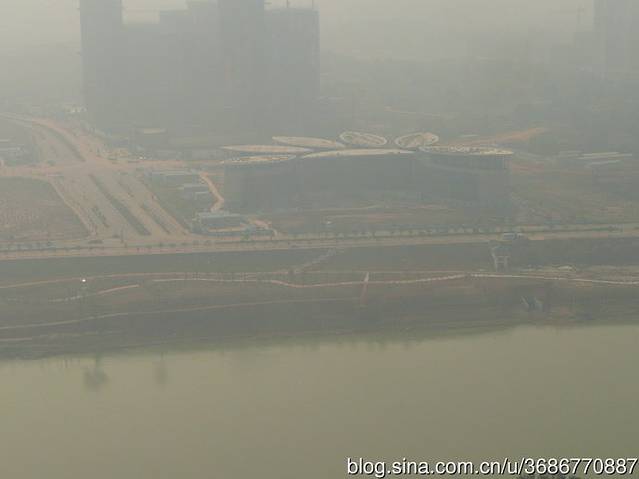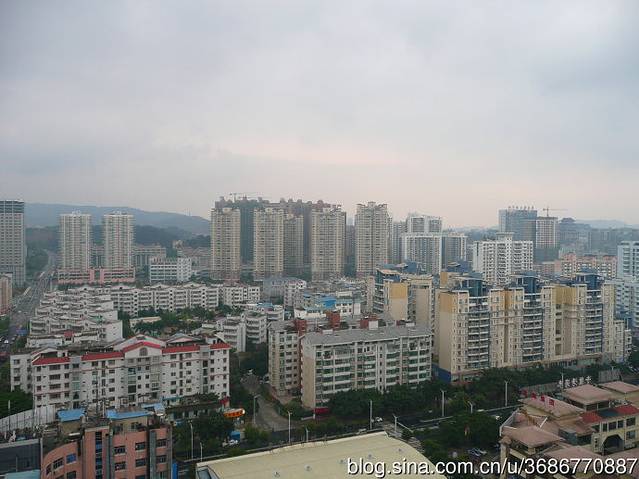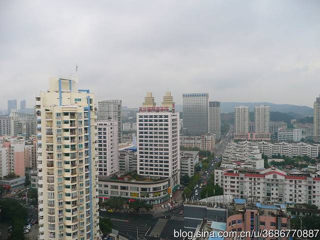 在旅馆房间拍照附近市容,这条主街就是汇春路,路的尽处不远就是清秀湖