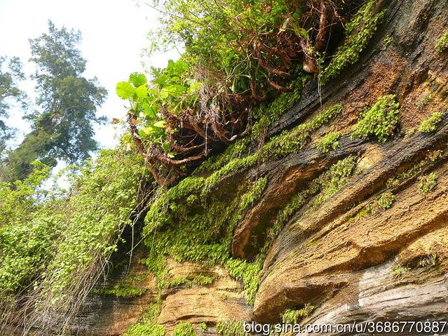 入峡谷的小径从遮天蔽日的枯藤老树下穿越下坠,宛如一条绿色的隧道通往地心。