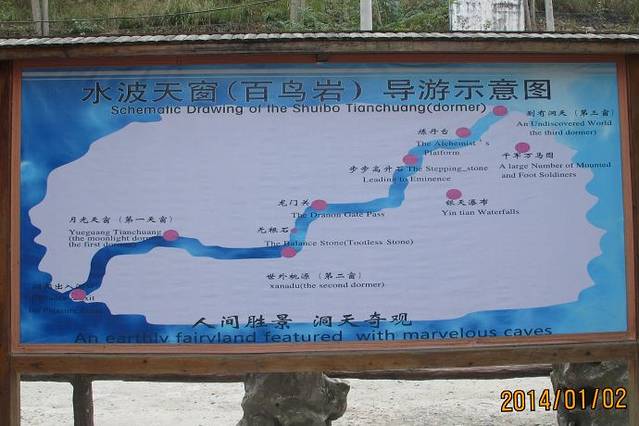 溶洞由隧道、前厅、金龙迎宾厅、龙宫宝藏厅、龙宫仙境厅、龙母后宫厅和仙人遗址等七个部分总成,展示了精美绝伦、气势磅礴的中国天然龙文化。面积为16800平方米,旅程880米,游时约一个小时。