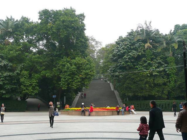 走进正门,迎面而来的是141级石台阶,是为了纪念前苏联援助中国141项工程而建的,宽约10米,直通树木青葱的望仙坡坡顶。