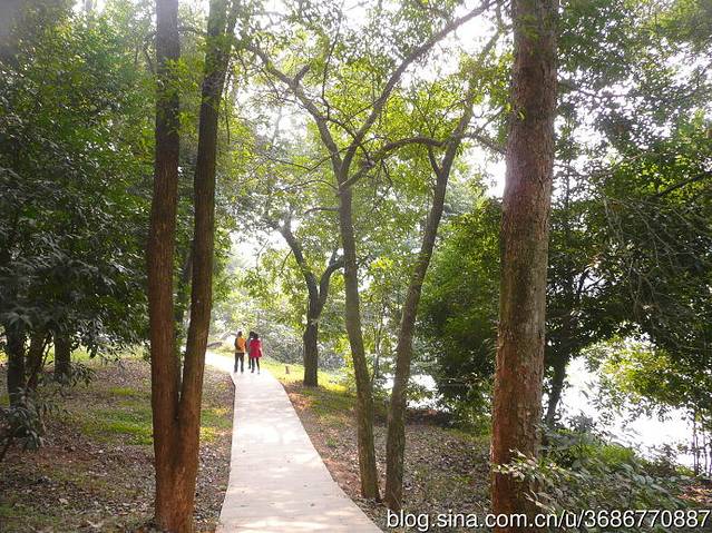 在这里向路左边看,哇,一个湖!这不就是清秀湖吗?!于是我们从这里下去进入青秀湖公园园区。