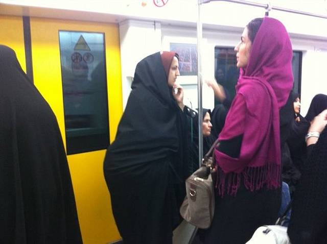 伊朗的地铁本是不允许拍照的,但我站在女士车厢,和一群黑袍女人一起,觉得实在很特别,忍不住用手机偷拍了两张。其实还是被发现了,但女孩们只是对我笑笑,没有一丝的不快。