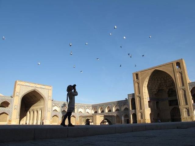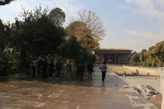 一群学生模样的人拿着各式相机,三脚架一字排开地在拍照,我们在伊朗游走的这些天,各大小景点几乎都看不到什么游客,这个阵势已经算得上“壮观”了。