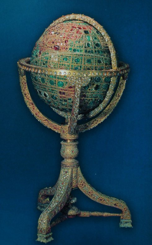 "GLOBE OF JEWELS"宝石地球仪。制作于1869年,37公斤重,外框和基座都系纯金制造,上面镶嵌的宝石总重1.82万克拉。其中海洋用祖母绿宝石镶嵌,陆地由红宝石镶嵌,再用钻石标出伊朗、英国、法国等国家的位置,真是稀世珍宝!!我们去的时候,宝石地球仪正在维修,幸运的是依然可以透过玻璃房一睹其光芒。几个工人在一个玻璃房里面拆洗上面的宝石,监控录像和一台录影机360度无死角地监控着她们,当然啦,地球仪上面镶嵌着51366颗红蓝宝石和钻石!!随便一颗都是价值不菲。
