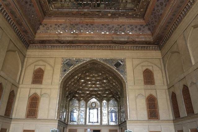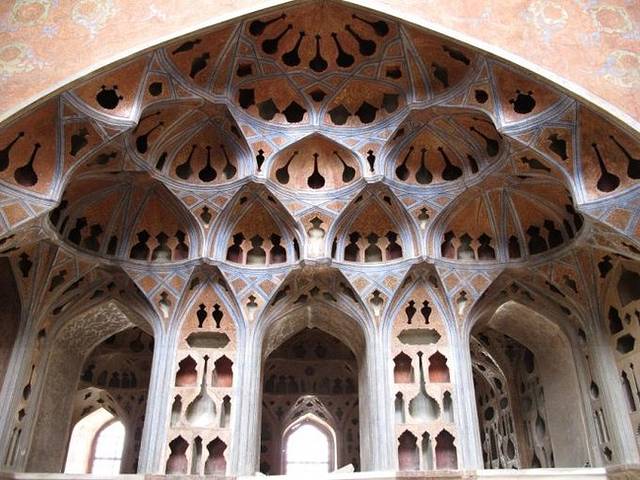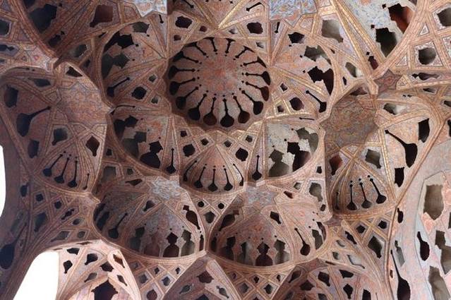 ALI QAPU的另一个特色是顶楼的music room,可以看到传说中无数镂空的天花板,那是为了奏乐时引起乐器共鸣,加强音效的建筑结构,看起来也是非常精致。