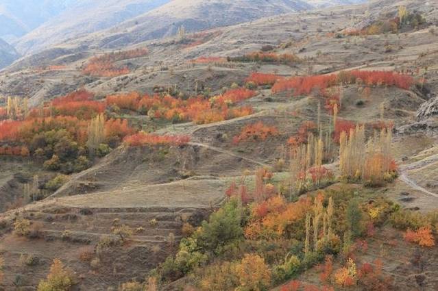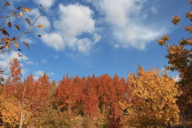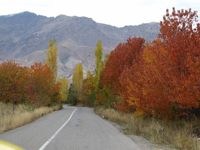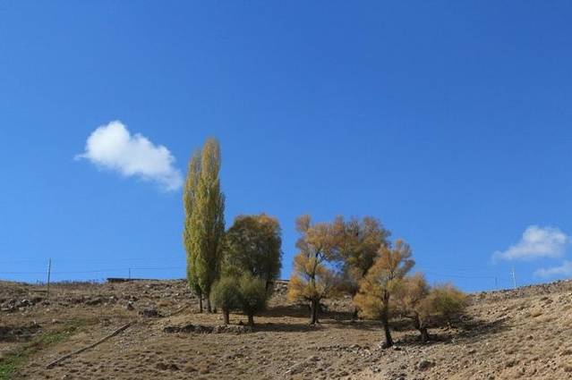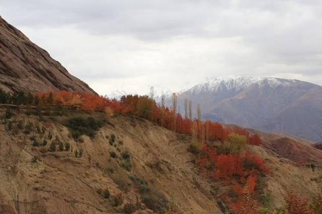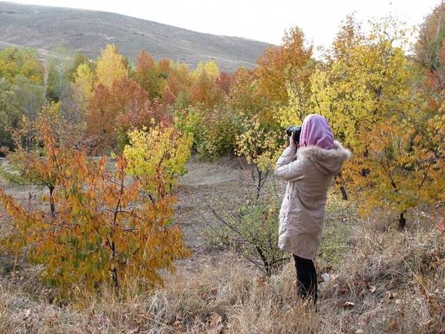 随着车辆行驶进山区,海拔渐高,道路两边的植物开始呈现出斑斓的色彩,秋天如一幅绚丽的画卷在车窗外铺陈开来。又见秋天,总是会勾起许多的回忆。本还想去刻意地寻找,没想到伊朗的秋就这样大气而出其不意地呈现在我们面前,在这片印象中只有炎热和沙漠的中东土地。