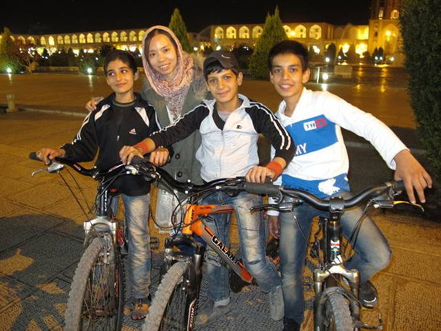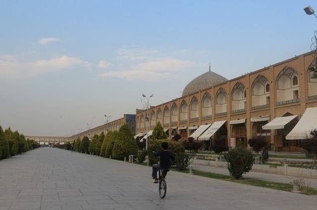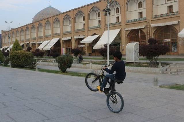 转了一圈出来,我们继续前往sheikh lotfollah清真寺,路上又遇到有小孩玩单车杂技,似乎伊朗的男孩子们都对这项运动乐此不疲,不管是骑着自行车还是摩托车,兴致一来就随时在路上炫一炫自己的车技。