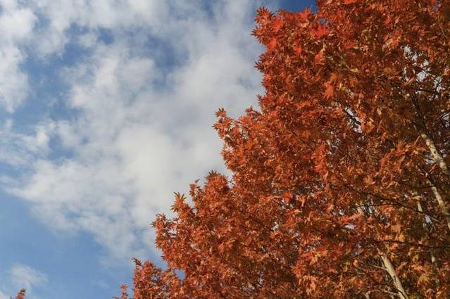趁着ALI准备早餐的空隙,我们走进树林里寻找秋日的惊喜。绿的、黄的、红的、褐的,五彩缤纷,映着蓝蓝的天空,棉絮般的云彩,我仿佛回到了坝上的时光……很熟悉但又时过境迁的感觉。