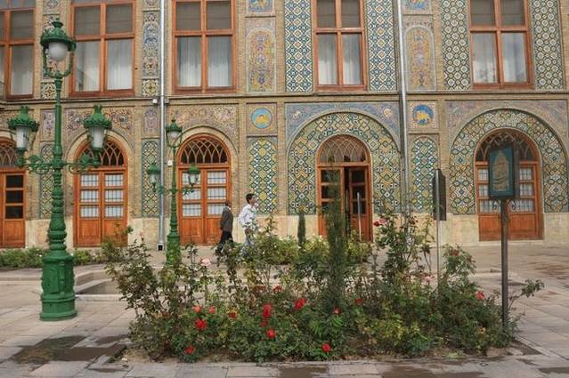 一个站后下车,出了地铁站走没多远就是古列斯坦宫,门票4万,但有8张票,可以参观8个地方。古列斯坦宫,又被成为“花之宫殿”,是德黑兰最古老的建筑之一,18世纪以后曾作为皇家生活的地方,巴列维父子的加冕仪式都是在这里举行的,而在巴列维时期,这里也是伊朗国王接见外宾的地方。整个古列斯坦宫被认为是伊朗建筑的精华,尤其是其内饰,极富伊朗特色。