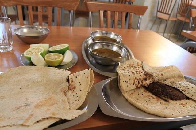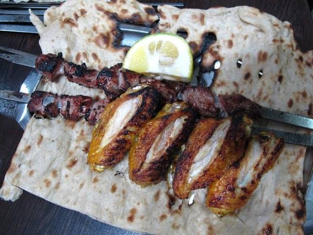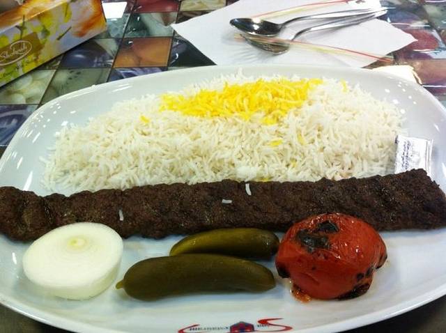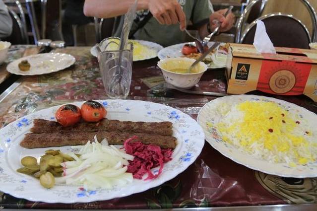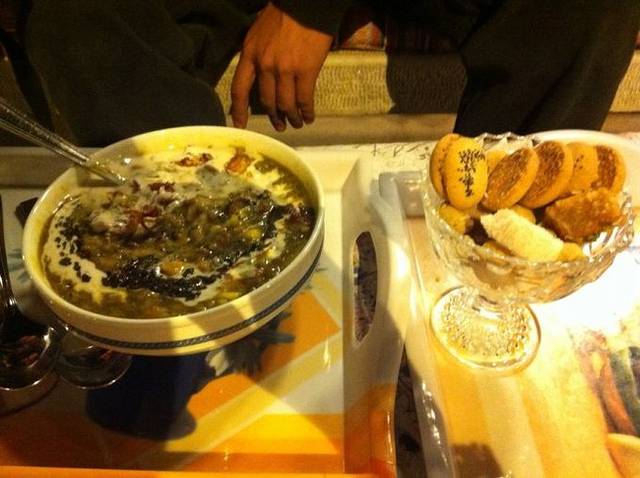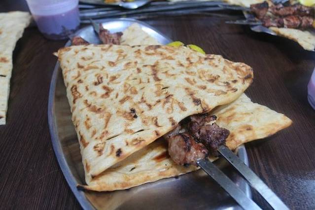 从地毯巴扎出来,我们又去到街上一家羊肉店吃烧烤。那些烧烤很大一串,我拿起来,像在国内吃烧烤一样啃,结果被铁烫了一下,飞行员也不能幸免。我的一声尖叫惊动了旁边的伊朗人,他们很惊讶我们怎么会想要这样吃羊肉!然后教我们要用大饼压着羊肉,一拉铁枝,那几块羊肉就出来了,然后用大饼裹着羊肉沾羊汤吃。我们几个实在汗颜,我更是感觉头顶有无数只乌鸦飞过,那些伊朗人肯定在想:“这个东方女人看上去还算斯文,怎么吃起东西来那么豪放……”