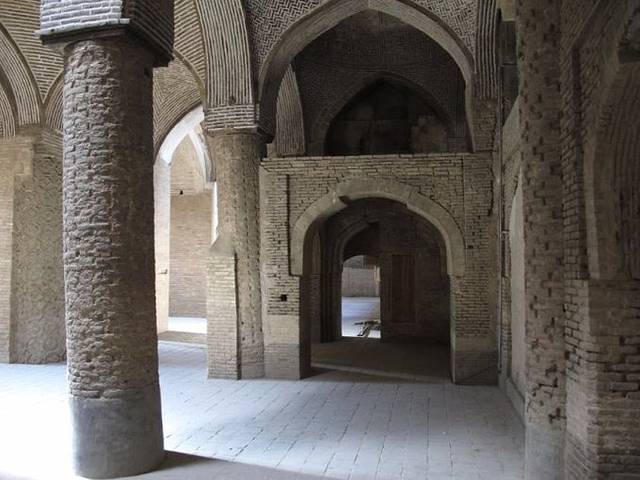 有的大厅有很多的柱子,整个清真寺都没有贴瓷片,没有不同色调的渲染装饰,也没有波斯地毯的艳丽铺陈,一点都不华丽,但那些朴素的砖泥,保持着泥土本身的色彩,厚重的灰黄色,在岁月中透着庄严,在质朴中显着肃穆,散发着古老的魅力和独特的气质,时光也仿佛在此倒流了上千年。