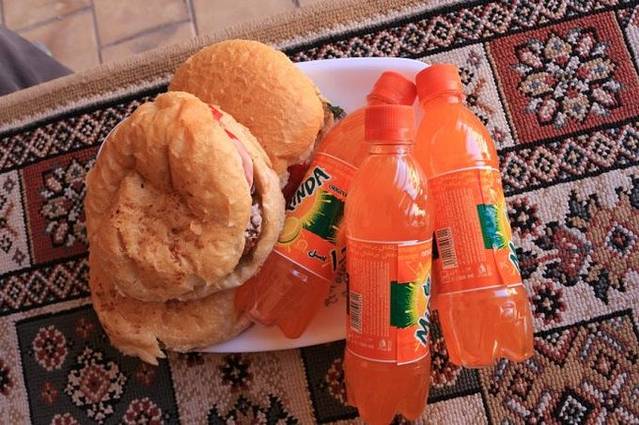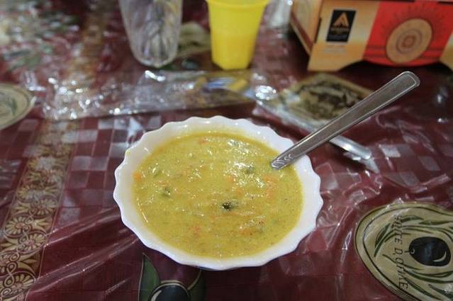 我们找了个波斯大床舒舒服服地坐下来,准备美餐一顿。还没有点菜呢,服务员就已经把汤和蔬菜沙拉还有果冻都送上来了。点了主食的套餐,人均也就30多人民币,要知道这已经是在装修上好的餐厅里了。饭还没有上,同伴手机上忽然有一个国内号码打过来的电话,按掉之后又打过来,同伴才被迫接听了。居然是飞行员帅哥打过来的,信号很模糊,只能听到他说那个人被抓到了!要我们回来指证!!!