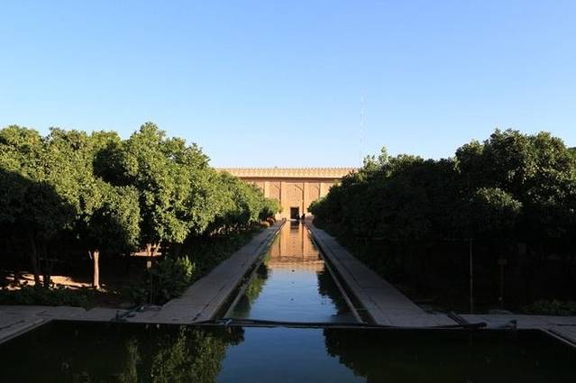 我们刚进宫殿就看到大理石宫,挺气派的,正对着庭院和水池。这里是昔日节庆时举行庆祝仪式的地方。