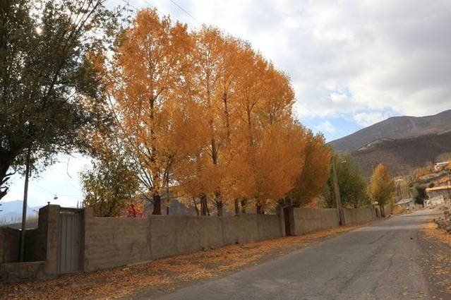 越往山脉深处,秋色越浓,而且非常具有中东特色,都是在山沟沟里,突然地就出现一大片彩色的树林,树林旁边又连着大片的村落,挺诗意的栖居。不知是不是这样的场景留下的印象太深刻,从伊朗回来后,我还做了一个梦,梦见我们在寻找一片金灿灿的树林……