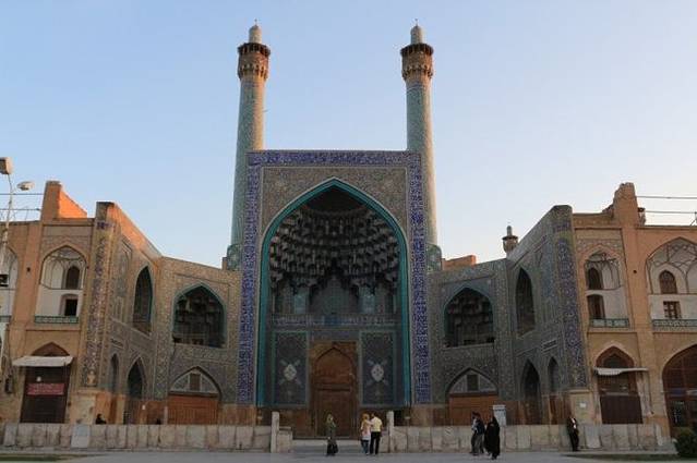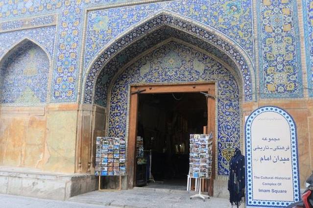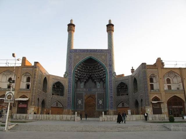 从警察局出来已经下午两点多了,还好伊斯法罕我们只剩下两个清真寺没有看。于是先到伊玛目大清真寺。这座清真寺始建于1611年,是伊朗境内清真寺的建筑典范,它的内厅、外墙、穹顶都由以蓝色为主基调,再搭配黄色的精美瓷砖镶嵌而成,因此被称为东方的“蓝色清真寺”。由于这座清真寺的庄严和华丽,它还被列为世界上最伟大的建筑之一。