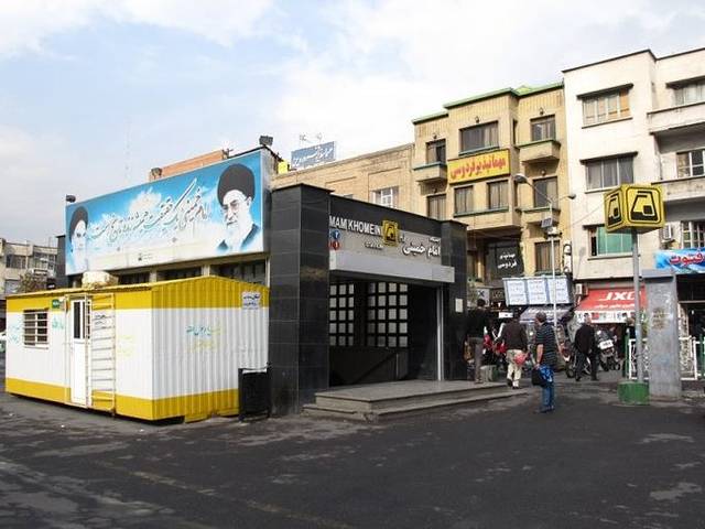 之前在旅馆问了如何去古列斯坦宫,一位女士建议我们走到霍梅尼广场坐那个免费的观光小火车去古列斯坦宫和大巴扎。但我们到广场的时候发现小火车已经开走了,只好到广场对面的地铁站坐地铁,也正好可以感受一下伊朗的地铁。